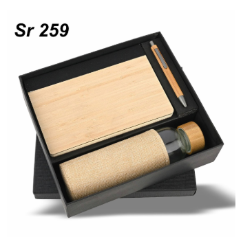 3 in 1 Lightwood (Wooden Diary, Pen & Glass Bottle with Jute Cover)