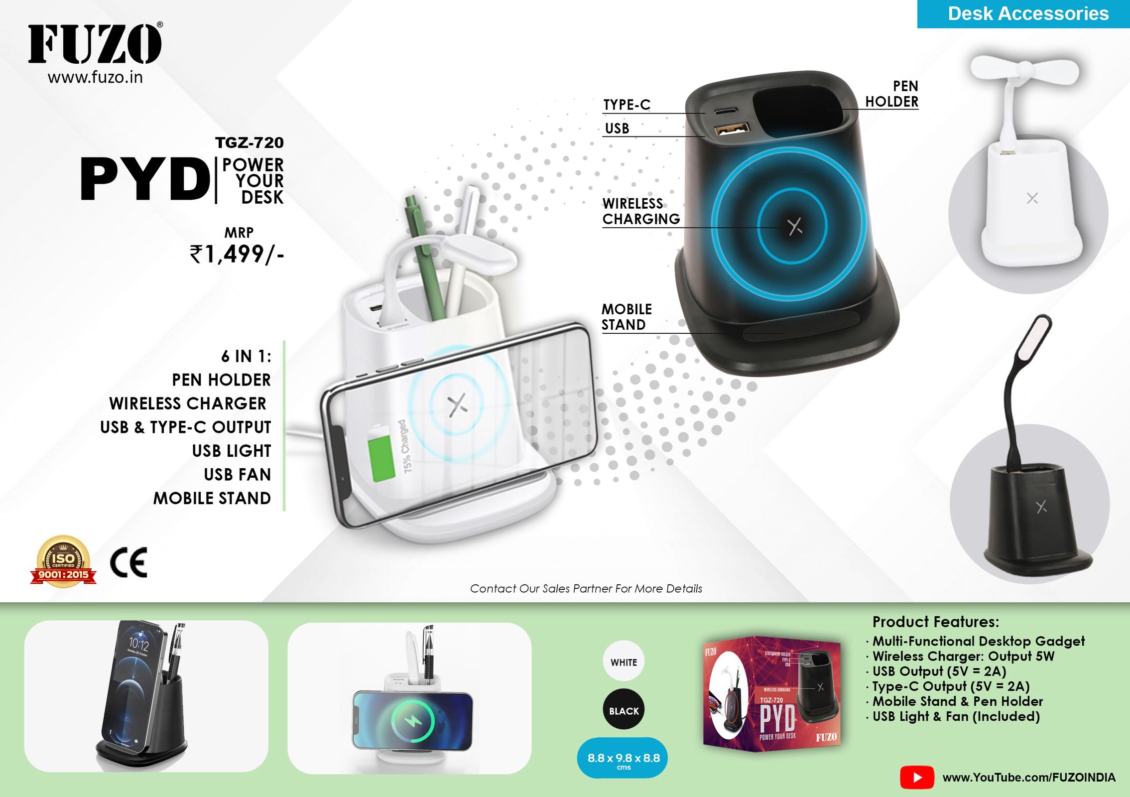 Pen Holder | Wireless Charger | USB & Type C Hub | USB Light | 6 in 1