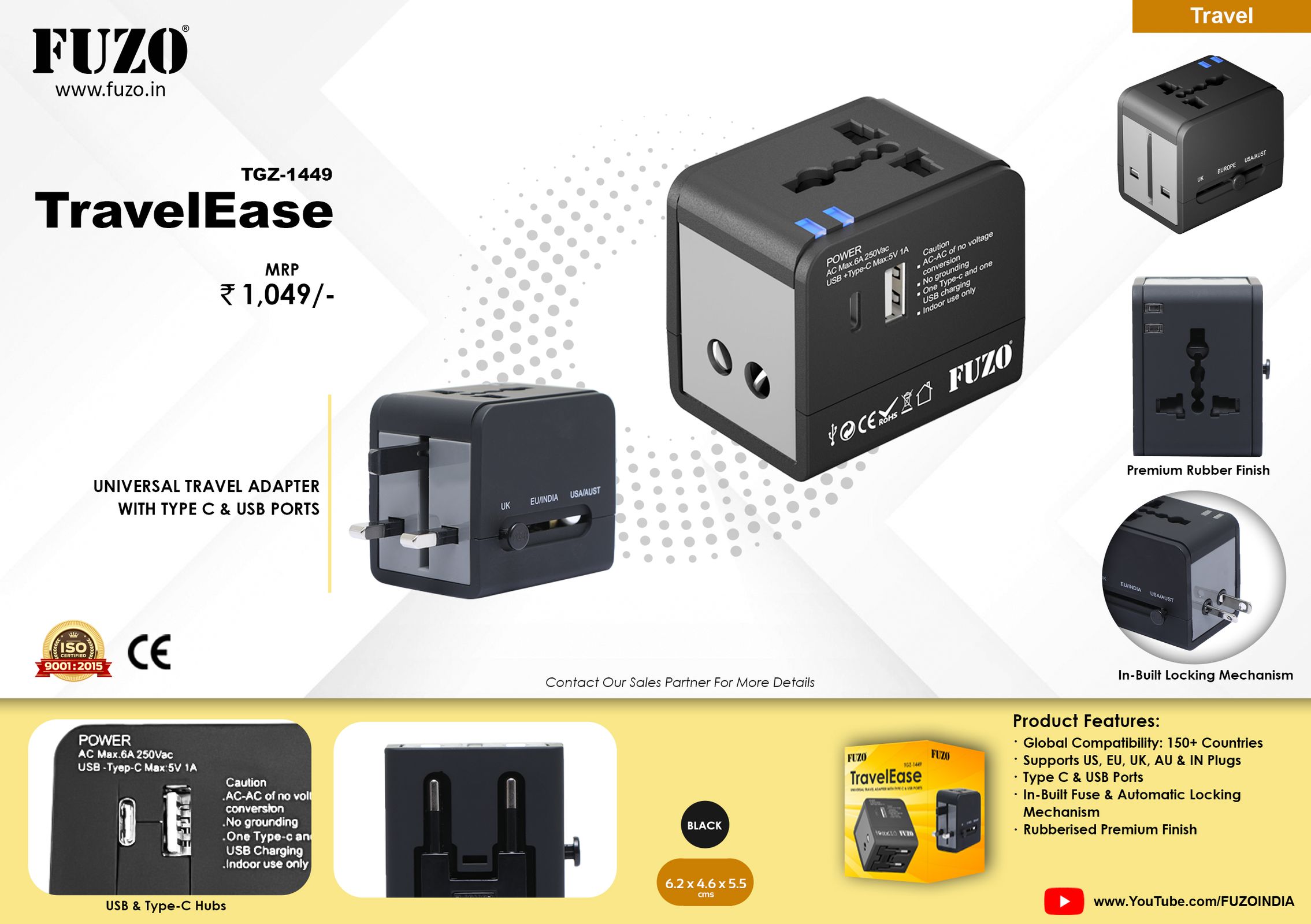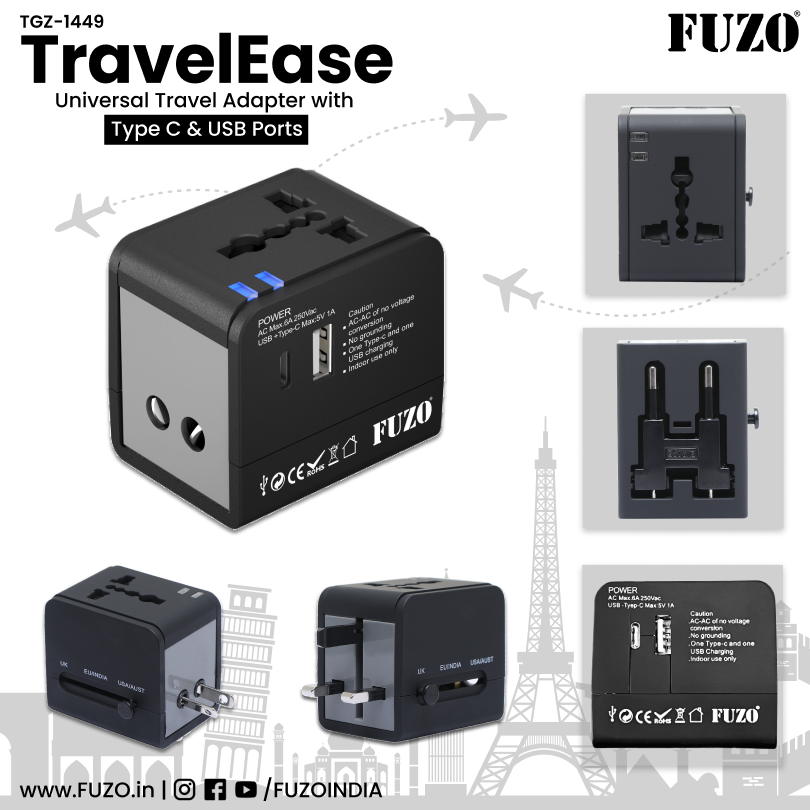 • Supports US, EU, UK, AU & IN Plugs